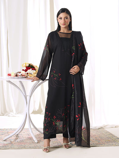 Introducing the chic Black Dress Shalwar Maxi and Dupatta - a modern and stylish ensemble...