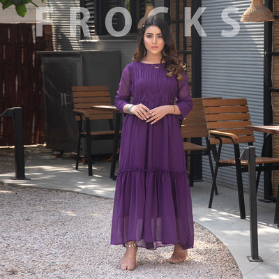 This elegant printed chiffon frock is a vision of grace, featuring delicate lace detailing along...