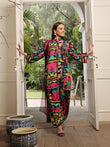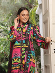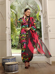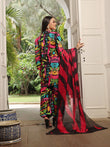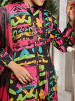 Discover Ebullience. Swiss Lawn with a black base, rich colorful textures, and a soft silk dupatta with black and red scattered designs. Perfect for a vibrant summer look!