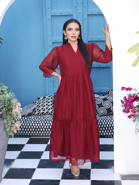 Flary Long Maroon Frock (FR-614N)