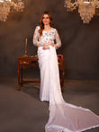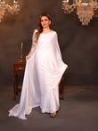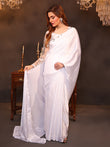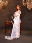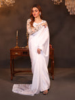 This pristine white silk saree embodies grace with its smooth, luminous fabric that drapes effortlessly. Its subtle sheen adds a touch of sophistication, making it a symbol of timeless beauty. Paired with a delicately embroidered blouse, it creates an enchanting blend of purity and refinement, perfect for any elegant occasion.