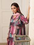Experience Limerence. Swiss Lawn with rich-colored canvas style prints and a chiffon patch on the shirt border. Paired with a soft silk dupatta with roses. Perfect for a stunning summer look!