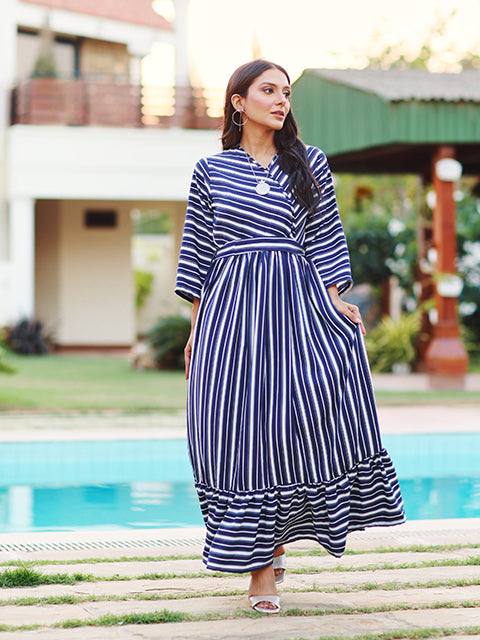 Highlight: The vertical stripes elongate the silhouette, making it flattering for all body types. Ideal for resort wear, summer outings, or casual brunches.