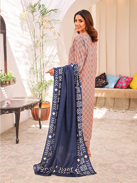 Presenting Rosette Rain Swiss Lawn with a beige base, overall floral print, and a lawn dupatta with .Perfect for a sophisticated and elegant look!