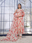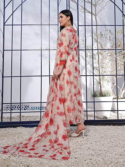 Presenting "Ruby red amaryllis" – a spellbinding dress in a rich, enchanting Pink Floral Tone. The chiffon maxi is adorned with a meticulously lace neck, creating a dazzling design. Paired with crepe bottoms, the ensemble is completed with a Chiffon dupatta. "Ruby red amaryllis" is a masterpiece of elegance and sophistication.