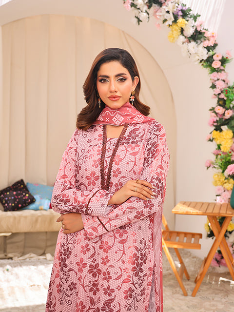 Presenting Serene Splash – an exquisite Swiss Lawn ensemble with a soft base, beautifully embellished with an all-over floral print. Complemented by a Pinkish floral lawn dupatta, this outfit embodies effortless elegance and timeless charm.