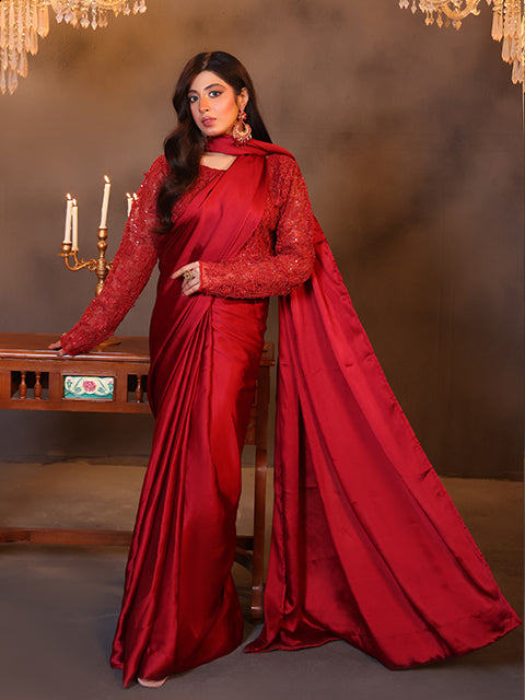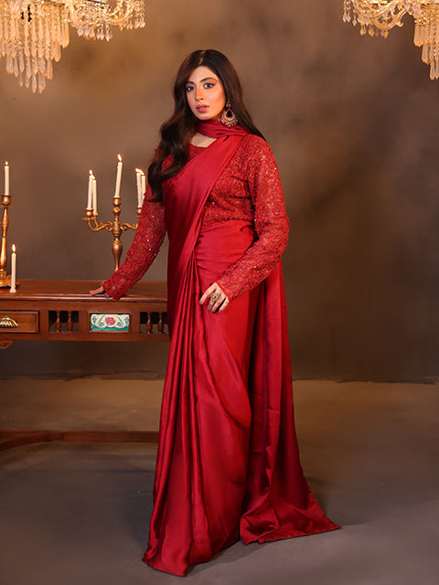 This enchanting silk saree flows effortlessly, exuding grace with its lightweight and airy drape. Its sheer texture adds a touch of ethereal charm, making every movement mesmerizing. Paired with a delicately embroidered net blouse, it creates a perfect blend of allure and sophistication. The sheer elegance of the blouse adds a hint of mystique, completing this timeless ensemble.